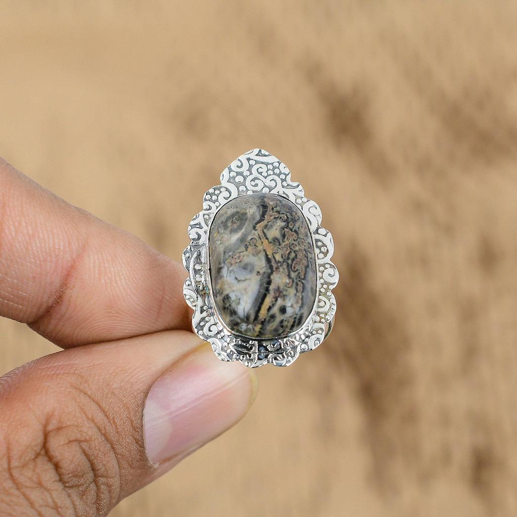 Radiant Natural Leopardskin Jasper Sterling Silver Mother Promise Ring Jewelry