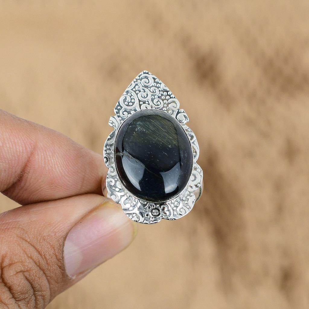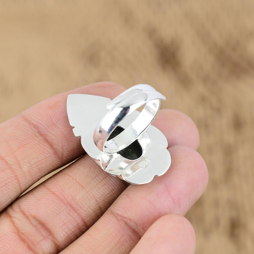 Свадебный подарок для нее Кольцо-обещание из серебра 925 пробы с натуральным камнем неллит и регулируемым размером