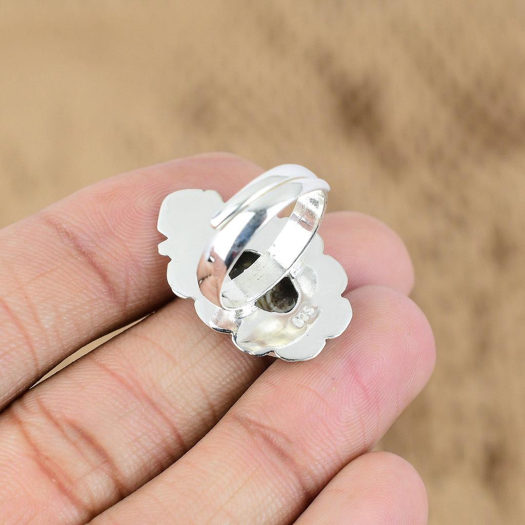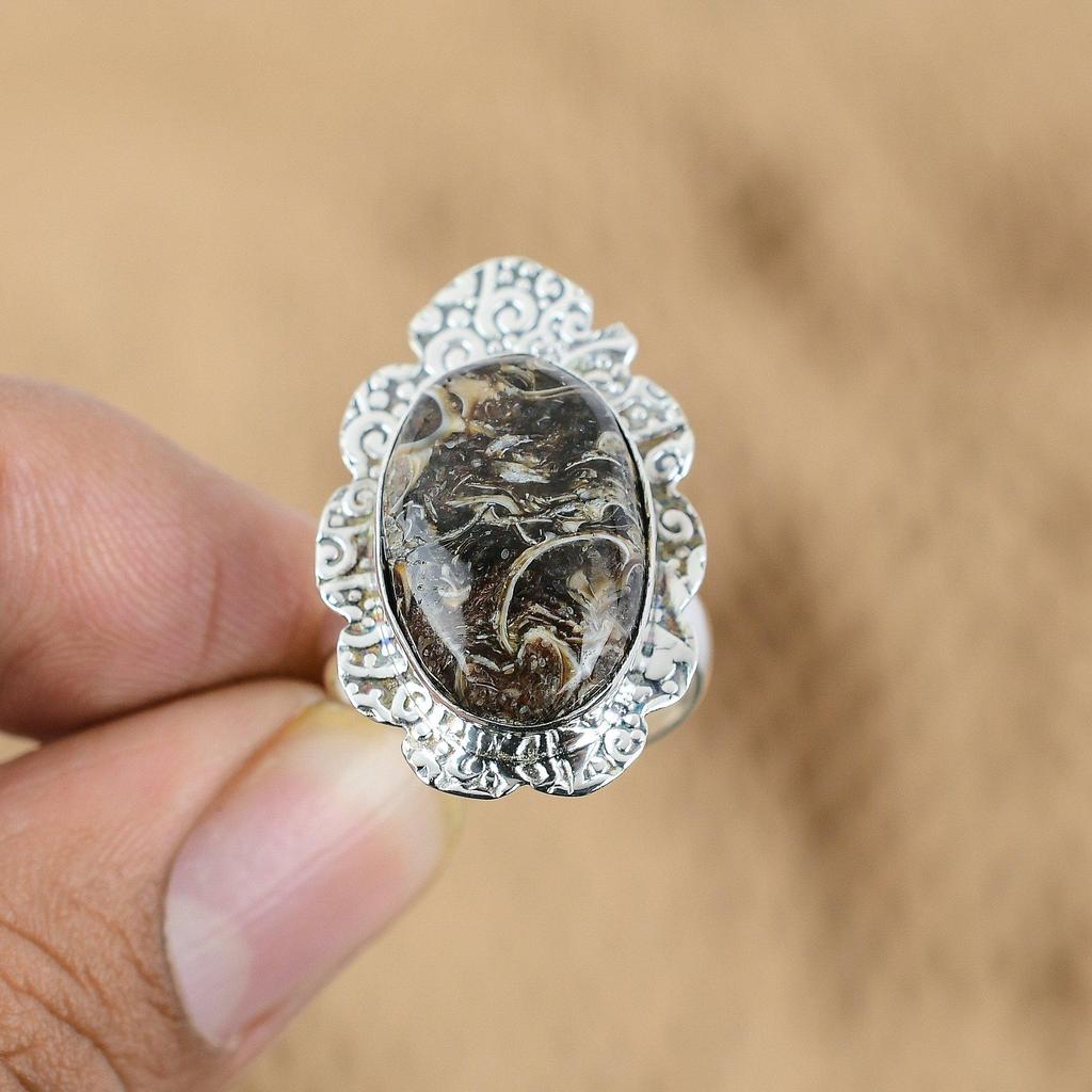 Сделка ко Дню матери Кольцо-заявление с овальным натуральным агатом Туррителла из серебра 925 пробы