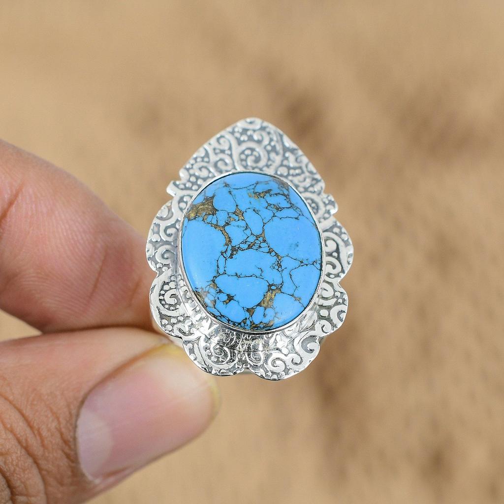 Предложение ко Дню матери Кольцо из стерлингового серебра 925 пробы с натуральной тибетской бирюзой и мультикамнями