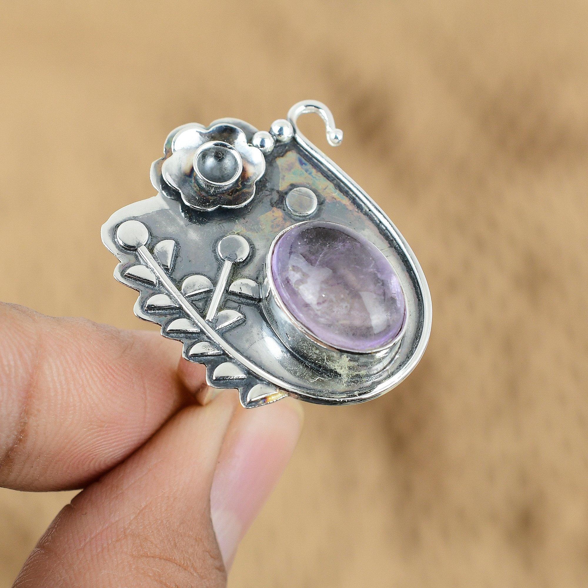 Серебряное кольцо 925 пробы с овальным африканским аметистом, обещание, день рождения, цветок, ювелирное изделие
