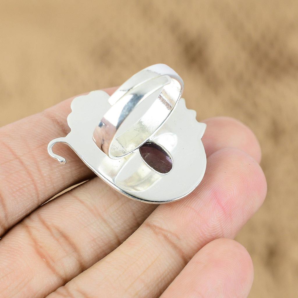 Natural African Amethyst 925 Silver Promise Flower Adjustable Ring For Women