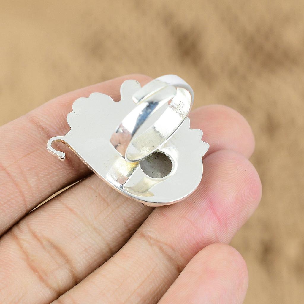 Natural Rainbow Moonstone Promise Flower Adjustable Ring 925 Silver For Girls