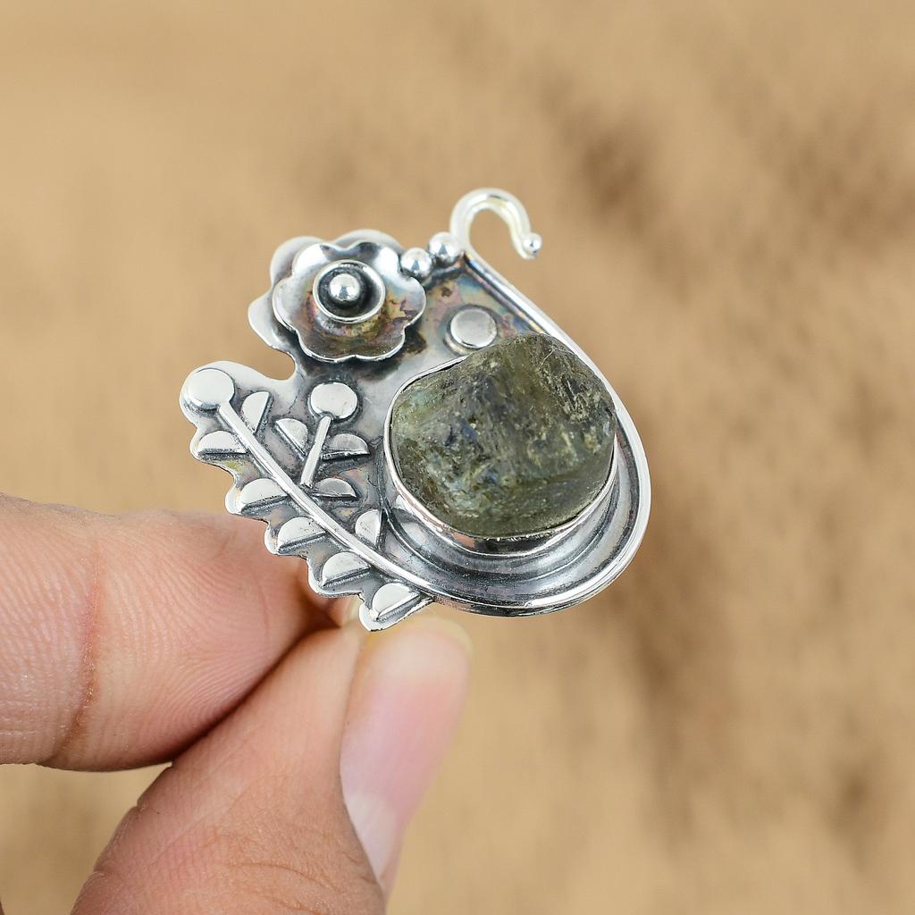 Натуральный Лабрадорит Необработанный Цветок Обещания Регулируемое Кольцо Серебро 925 Пробы Для Женщин