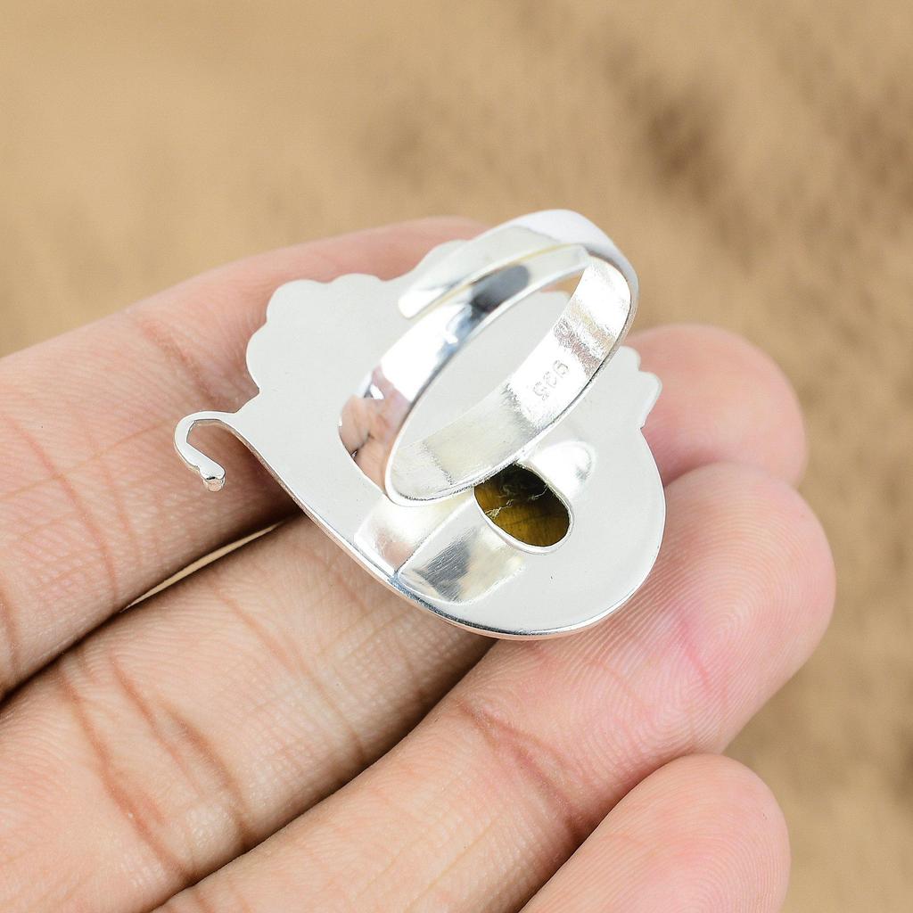 Sterling Silver Natural Tiger's Eye Multi Stone Sister Flower New Ring Jewelry