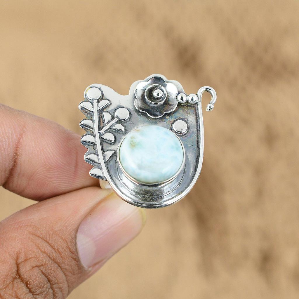 Mothers day Sale Sterling Silver Larimar Stone Flower Statement Daughter Ring