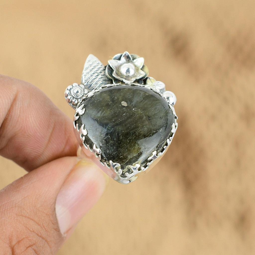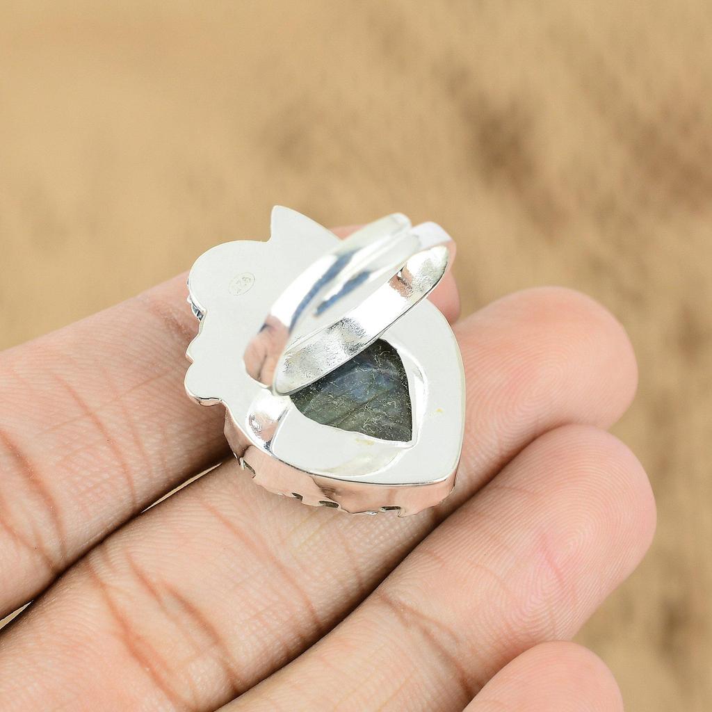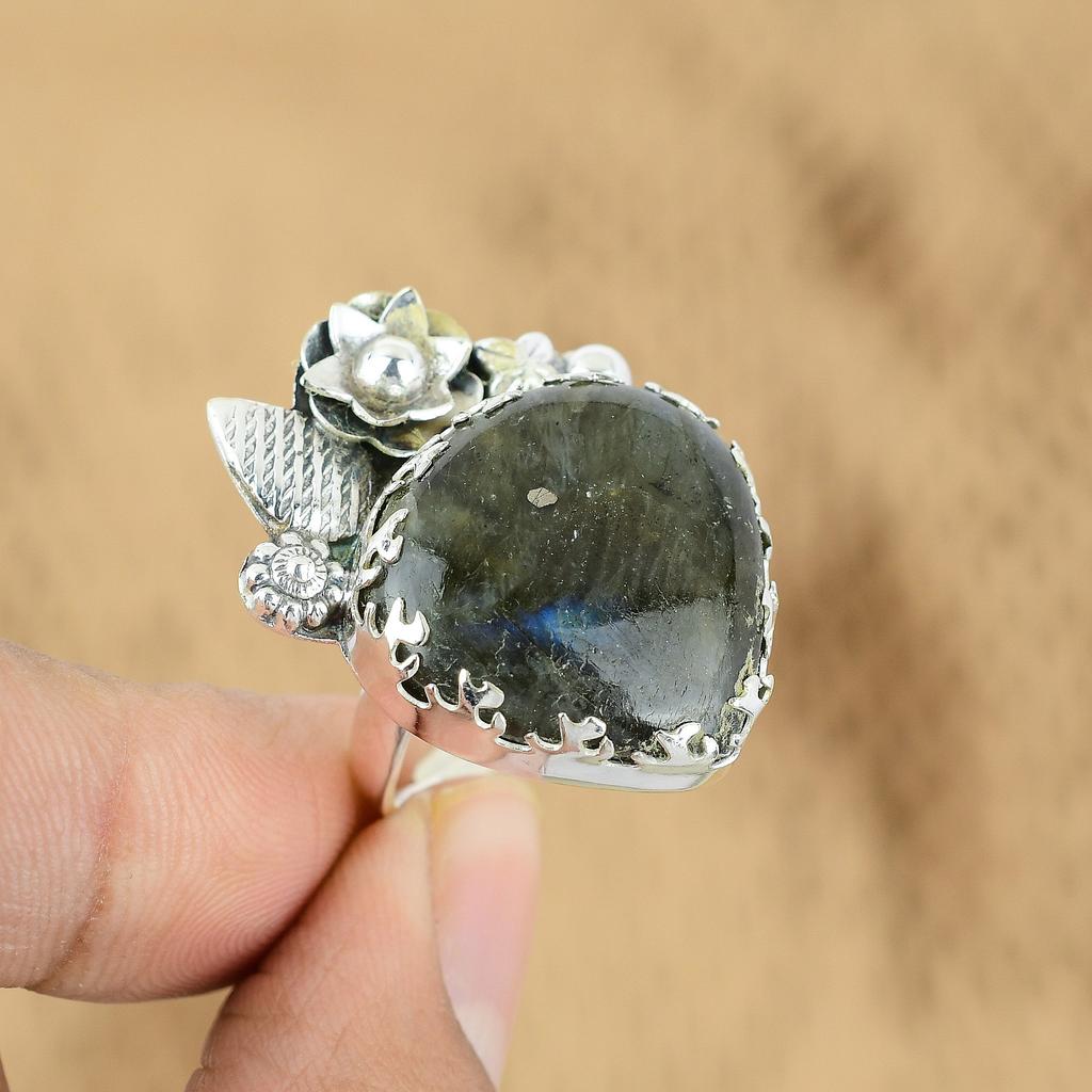 Распродажа ко Дню матери Кольцо-цветок обещания из натурального лабрадорита и мультикамней, серебро 925 пробы