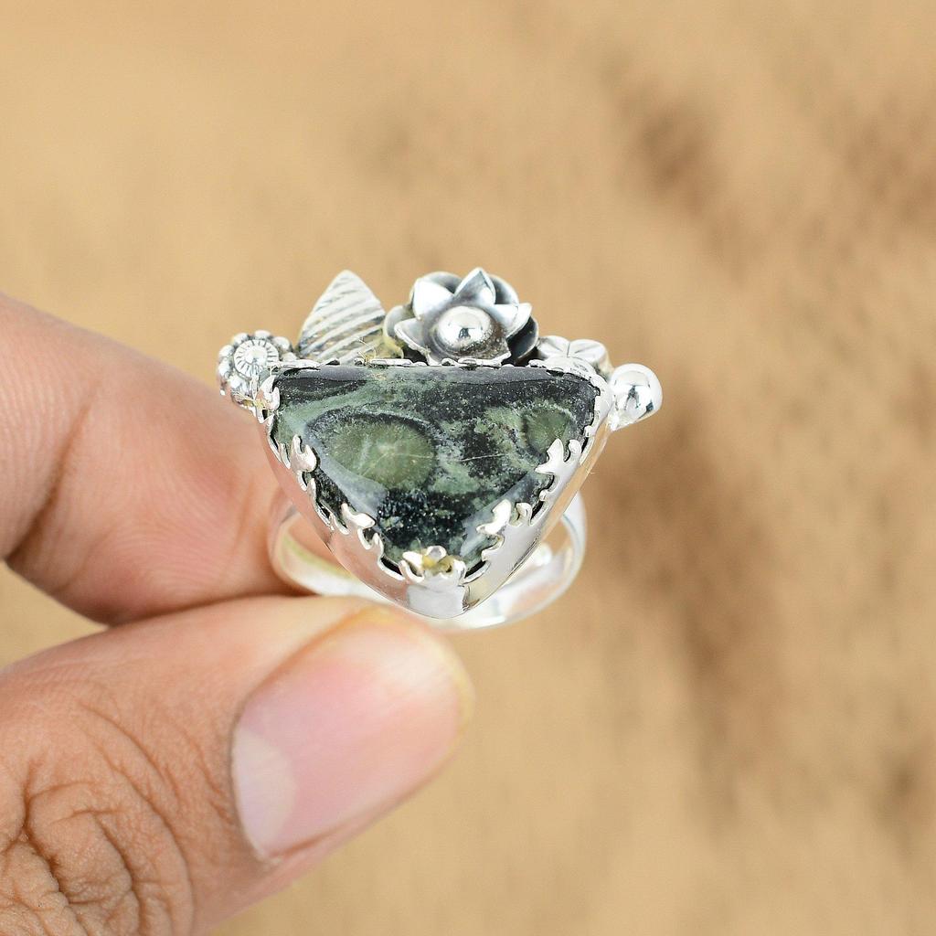 Серебро 925 пробы Камень Камбаба Яшма Ручная работа Кольцо-обещание Мать-цветок Ювелирное изделие