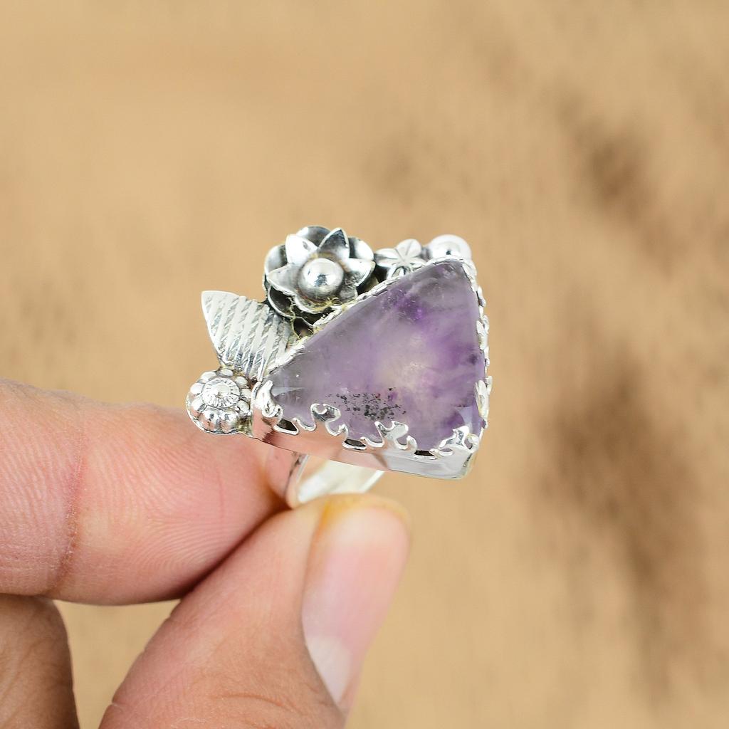 Подарок для нее Серебро 925 пробы Натуральный звездчатый аметист Мульти камень Цветок Регулируемое кольцо