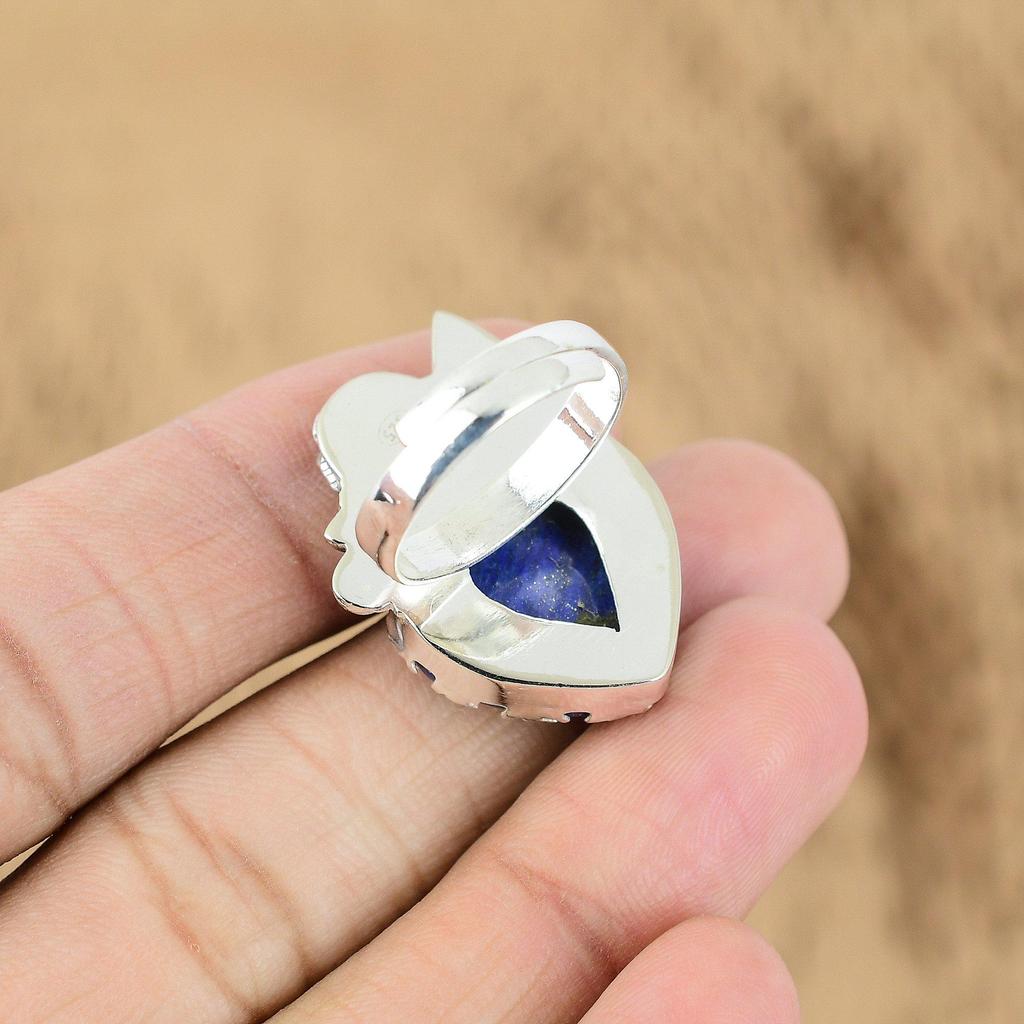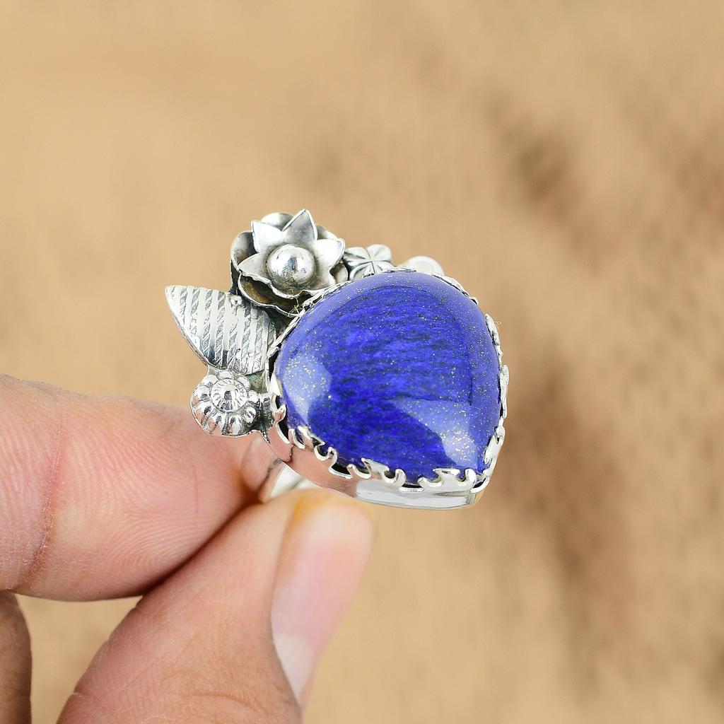 Серебро 925 пробы Лазурит Камень Дочь Бохо Обещание Кольцо с Цветком Ювелирные изделия