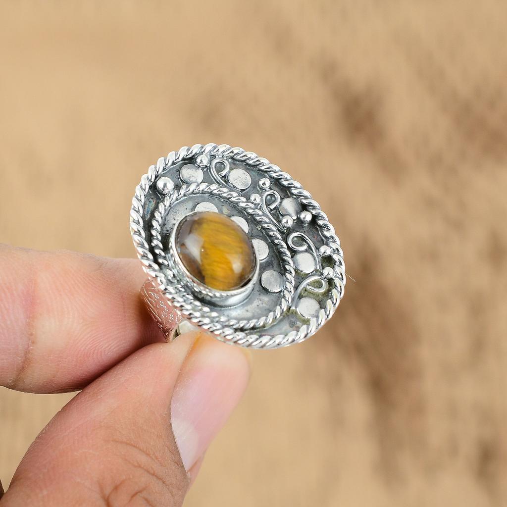 Mothers day Deal Tiger's Eye Stone 925 Silver Promise Statement Anniversary Ring