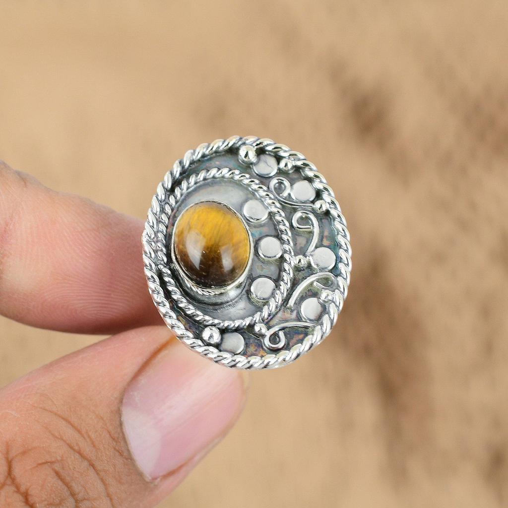 Anniversary Gift For Her Natural Tiger'S Eye Promise Adjustable Ring 925 Silver