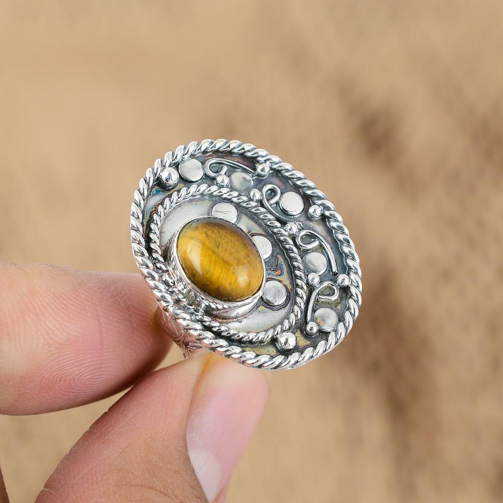 Ко Дню матери Сделка Овальное кольцо с камнем Тигровый глаз для сакральной чакры Ювелирное изделие из серебра 925 пробы
