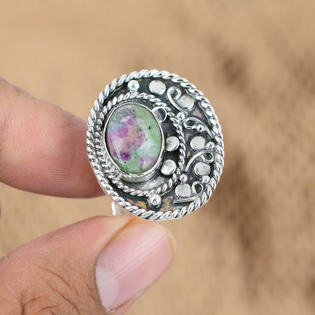 Натуральный рубин цоизит драгоценный камень обещание зеленый регулируемое кольцо 925 стерлинговое серебро