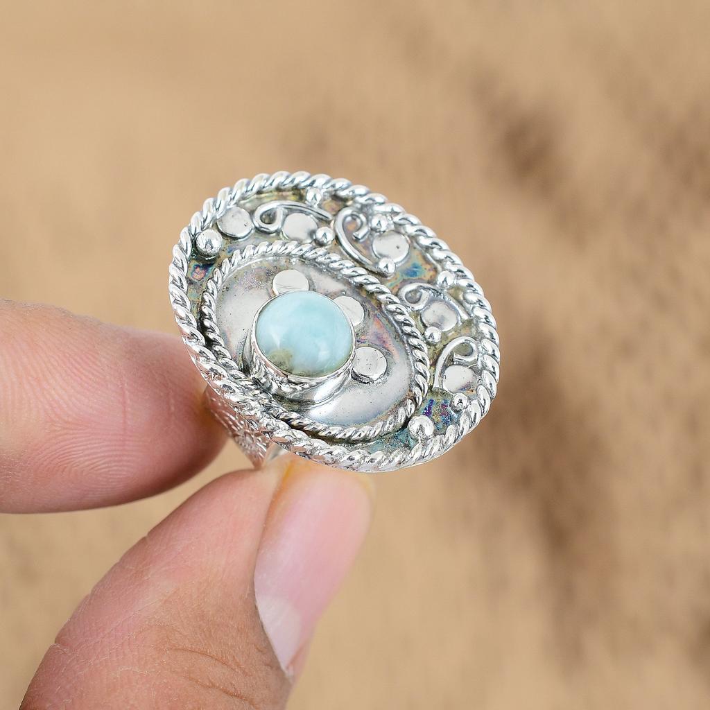 Подарок на день рождения для нее Натуральный ларимар Мульти-камень Регулируемое кольцо 925 серебро