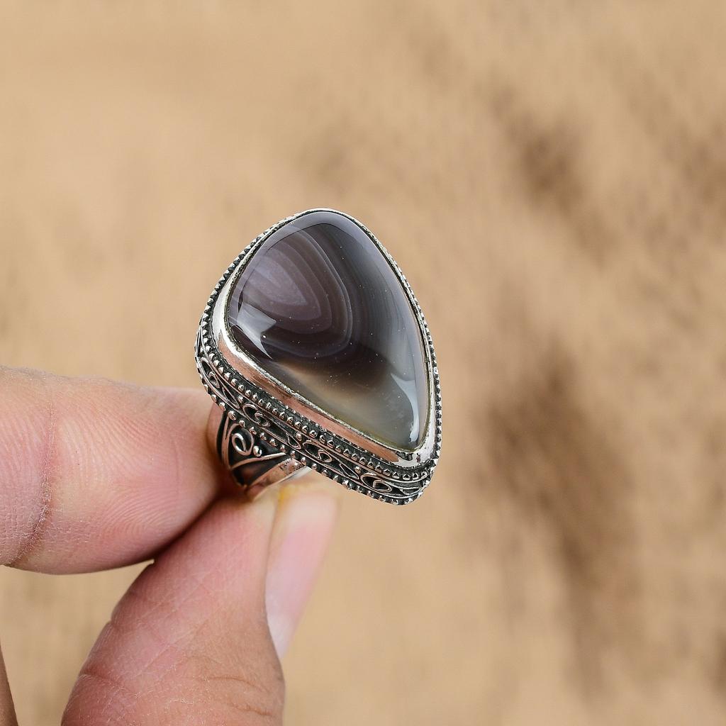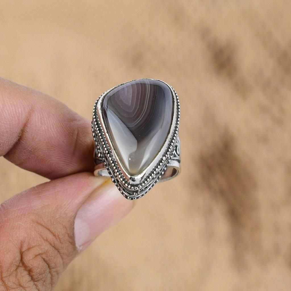Винтажное кольцо-обещание из стерлингового серебра с камнем Ботсванский агат, ювелирное изделие, США 7,5