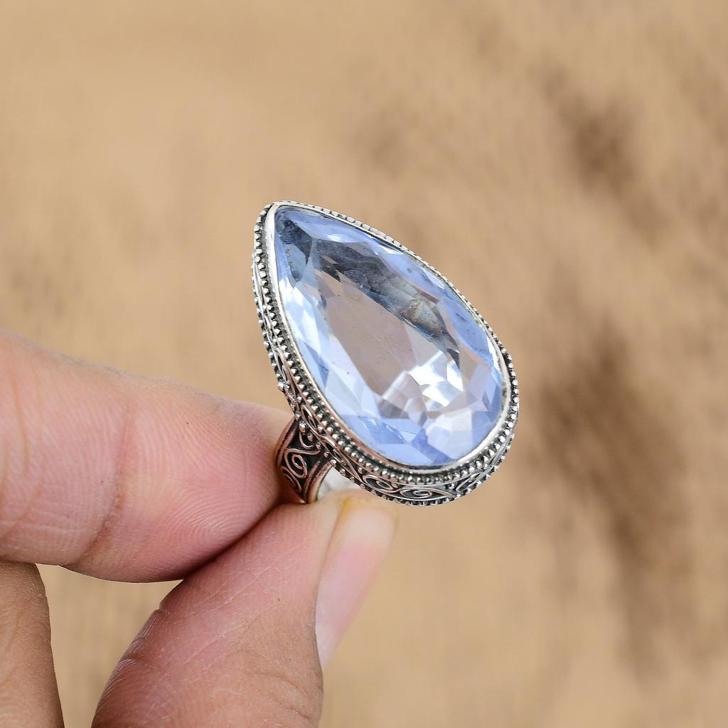 Подарок для нее Натуральный танзанитовый кварц Кольцо-обещание Винтаж Размер 9 Серебро 925 пробы