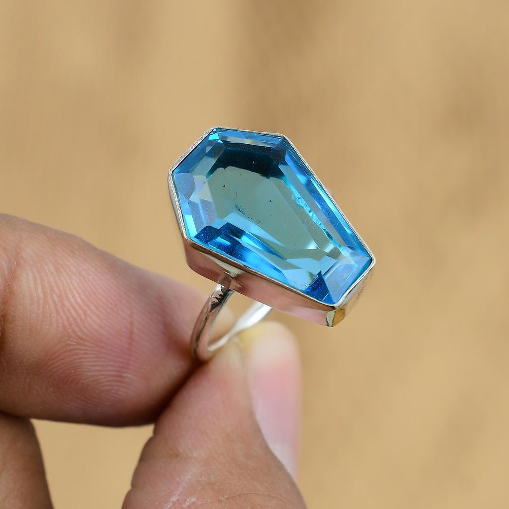 Свадебный подарок для нее Кольцо из серебра 925 пробы с натуральным швейцарским голубым топазом и россыпью камней, размер 8 — купить товар онлайн с бесплатной доставкой по всему миру!