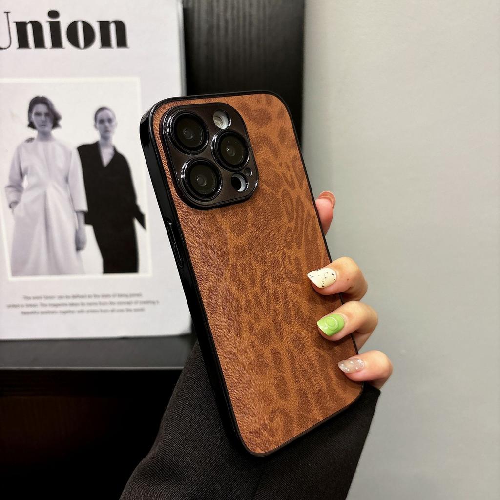 Чехол для телефона с текстурой кожи леопардового принта, подходит для IPhone16, защитный чехол 15promax и IPhone 15 с защитной пленкой для объектива