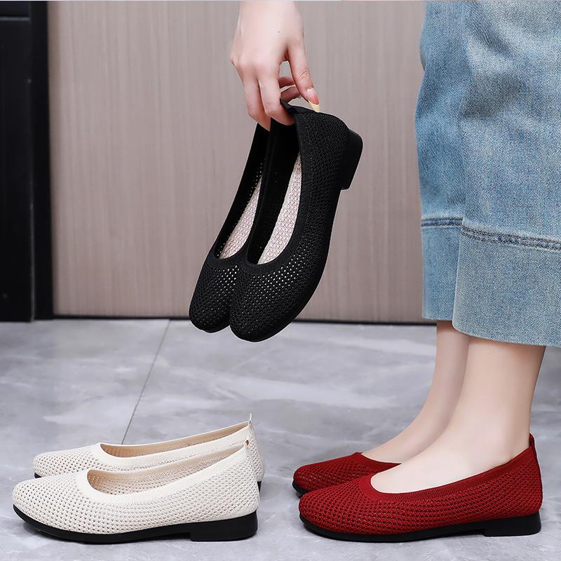 Женская обувь, новые дышащие повседневные туфли, легкие сетчатые туфли с одной педалью, женские туфли на плоской подошве, летающие плетеные одинарные туфли