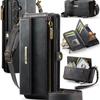Чехол-бумажник с длинным ремешком из флип-кожи для Samsung Galaxy S26 Ultra S25 FE S24 Plus S23 S22 S21 A57 A17 A16 A56 A15 A55 A14 A54 с молнией и карманами для карт