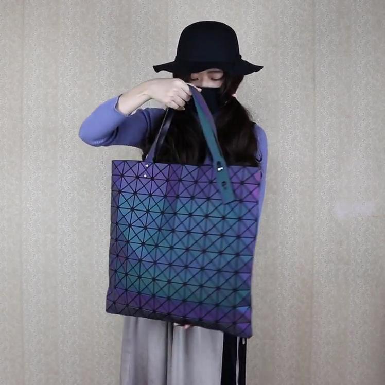 Женская сумка через плечо Новая с градиентным цветом Большая вместимость Матовая Лазерная Светящаяся Решетка Геометрическая Сумка-тоут Женская