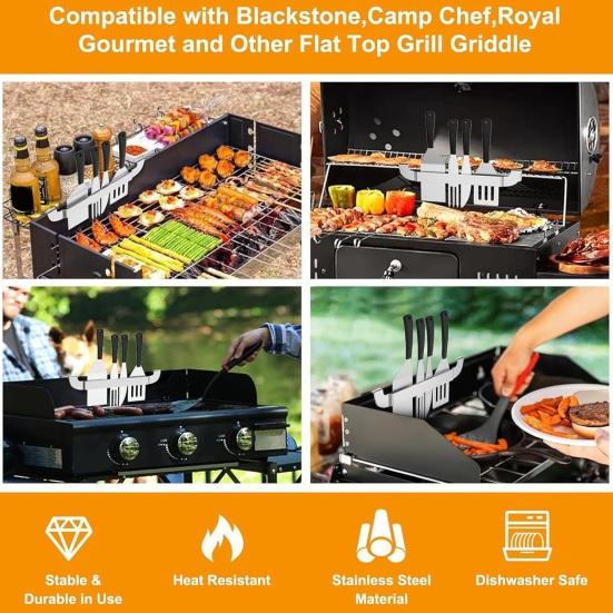 Обратите внимание, что при накрывании сковороды держатель лезвия необходимо снять для обеспечения надлежащего закрытия.. Тонкий дизайн с отверстием 0,2 дюйма может не подойти для всех размеров противней для выпечки из черного камня, поэтому, пожалуйста, проверьте совместимость перед покупкой.. Поднимите свой опыт барбекю на новый уровень с этой практичной и эффективной подставкой для лопаток!
