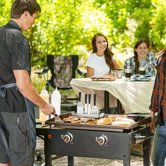 Этот держатель для лопаток из нержавеющей стали размером 25*3*1.8см экономит место и время, держа ваши принадлежности для барбекю под рукой.. Легко установить, просто повесьте держатель на стенку вашего противня для быстрой установки. Идеально подходит для различных сковород-гриль, представленных на рынке, это идеальный вариант для грилей для кемпинга на открытом воздухе и пикников.