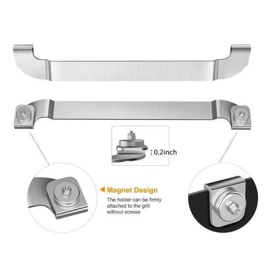 В отличие от традиционных держателей лезвий, наш инновационный дизайн оснащен магнитными кнопками на обоих концах, обеспечивающими надежное крепление к вашему противню без риска падения.. Функция магнитной фиксации позволяет легко регулировать положение стойки, обеспечивая удобный доступ к вашим инструментам для барбекю.