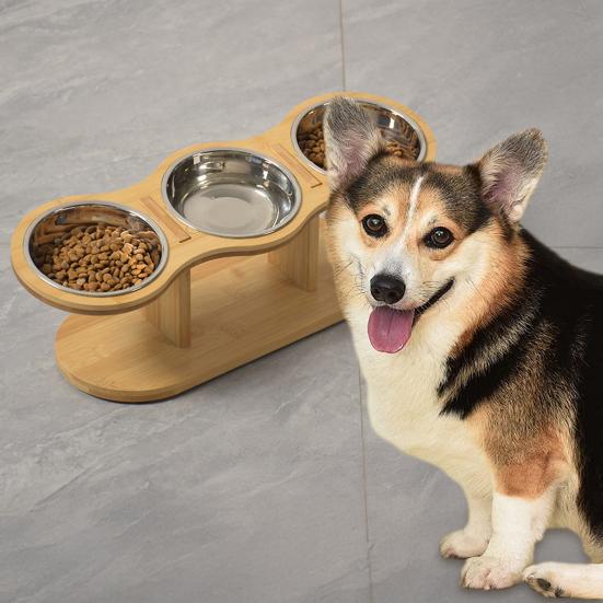 Превосходное качество и простота обслуживания: Изготовленная из натуральных материалов, приподнятая миска для собак имеет плоские края и гладкую поверхность.. Три чаши можно мыть в посудомоечной машине, что упрощает чистку и уход.