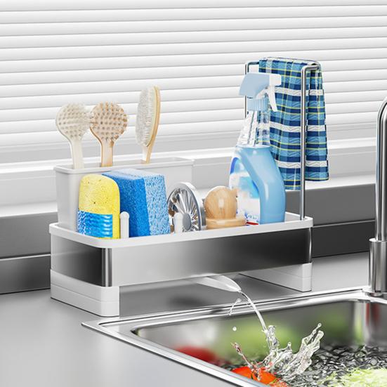 Благодаря достаточному пространству для губок, щеток, заглушек для раковины, тряпок, бутылок и многого другого, вы можете держать все необходимое в порядке и под рукой.. Уникальный поддонный сливной бак автоматически сливает излишки воды при достижении определенного уровня, сохраняя вашу столешницу чистой и сухой.. Обновите свое решение для хранения с помощью этой практичной и стильной стойки для хранения сегодня!