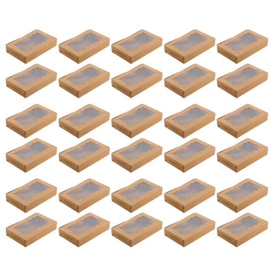 Эта коробка для выпечки из крафт-бумаги размером 17,8x11x3,8 см, вмещающая 30 изделий, предлагает достаточно места для вашей выпечки и отличается исключительной ценностью.