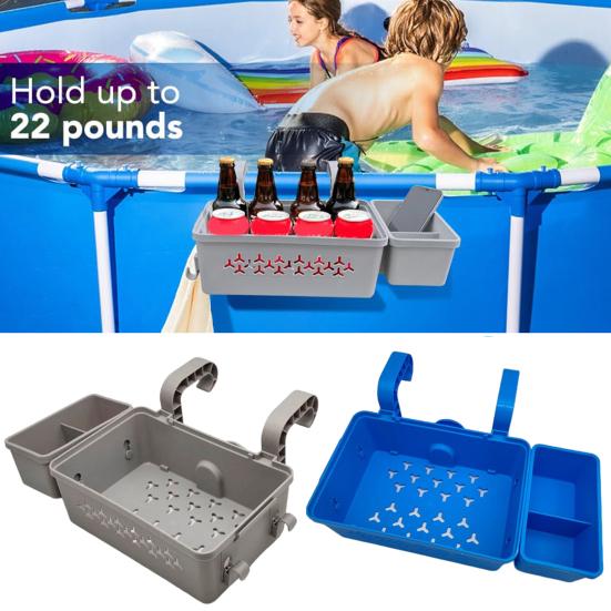 Идеально подходит для большинства надземных бассейнов с внешними воздуховодами, это универсальное решение для хранения включает подстаканники для дополнительного удобства.. Благодаря очень большой вместимости вы можете хранить полотенца, напитки, солнцезащитные очки и многое другое, создавая аккуратную и удобную зону у бассейна.. Будьте организованы со стилем!