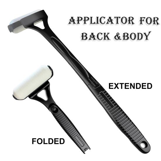 Складная эргономичная ручка: Ощутите максимальное удобство со складной длинной ручкой, которая без труда достает до вашей спины.. Эргономичный дизайн обеспечивает удобное хранение и увеличенную досягаемость, что значительно облегчает самостоятельное нанесение без необходимости посторонней помощи.