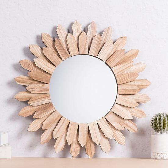 Отличительный дизайн с подсолнухом добавляет очарования и тепла любой комнате, привнося в ваш интерьер нотку природы.. Идеальное для декора спальни, это зеркало служит не только функциональным предметом, но и привлекательным акцентом, который оживляет ваше пространство.. Идеальное для украшения дома, это зеркало — незаменимое дополнение для вашей прихожей, гостиной, спальни или ванной комнаты.. Его уникальный дизайн и практичная функциональность делают его выдающимся предметом, который украшает ваш интерьер и оставляет неизгладимое впечатление на гостей.. Украсьте свой дом сегодня настенным зеркалом с дизайном подсолнуха из состаренного дерева.