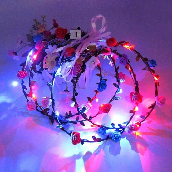 Украсьте свой стиль: Светодиодная цветочная корона, изготовленная из высококачественного пластика, излучает элегантность и очарование и идеально подходит для фестивалей, свадеб, вечеринок и многого другого.