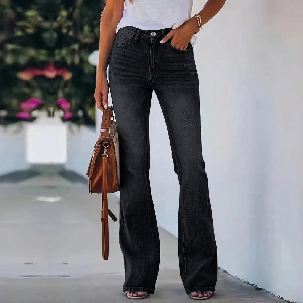 Модные женские облегающие расклешенные повседневные синие джинсы с высокой талией и карманами