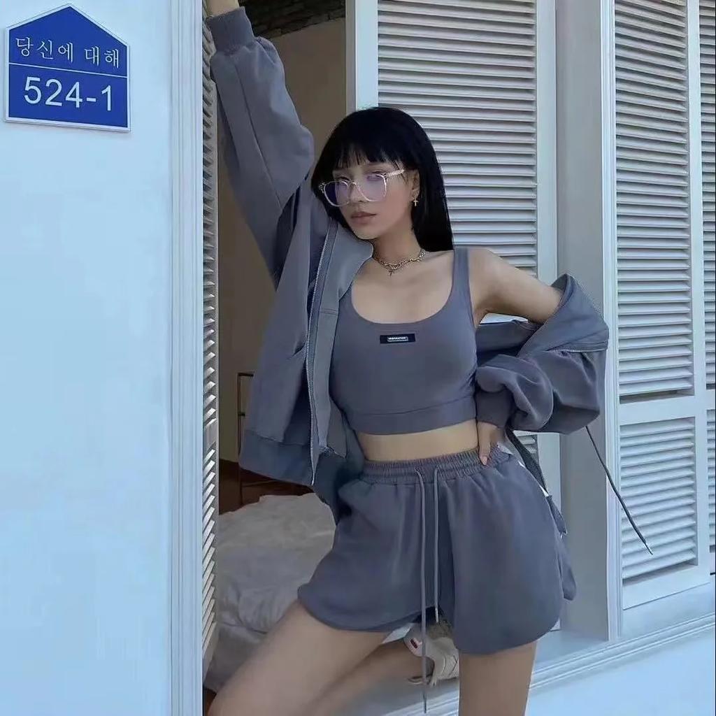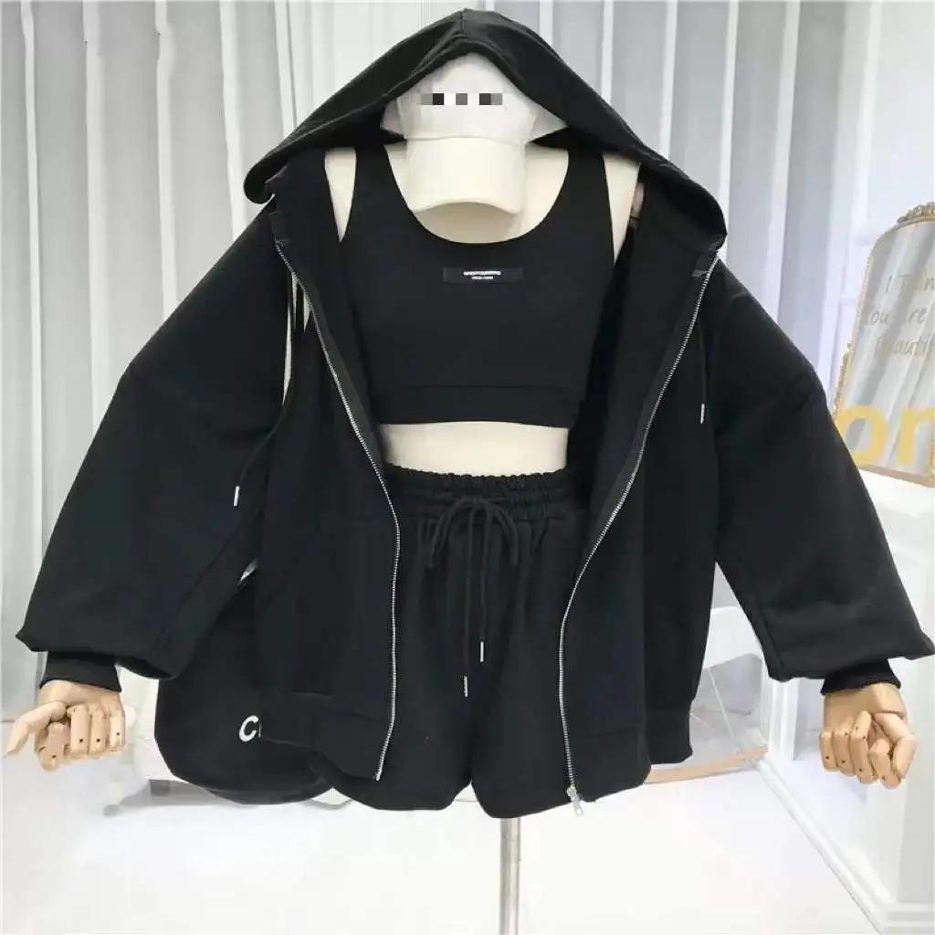 Шорты Тройки Женские Повседневные Жилет Шорты на Кулиске Толстовка на Молнии Спортивные Костюмы Y2k Уличная Одежда Спортивные Толстовки