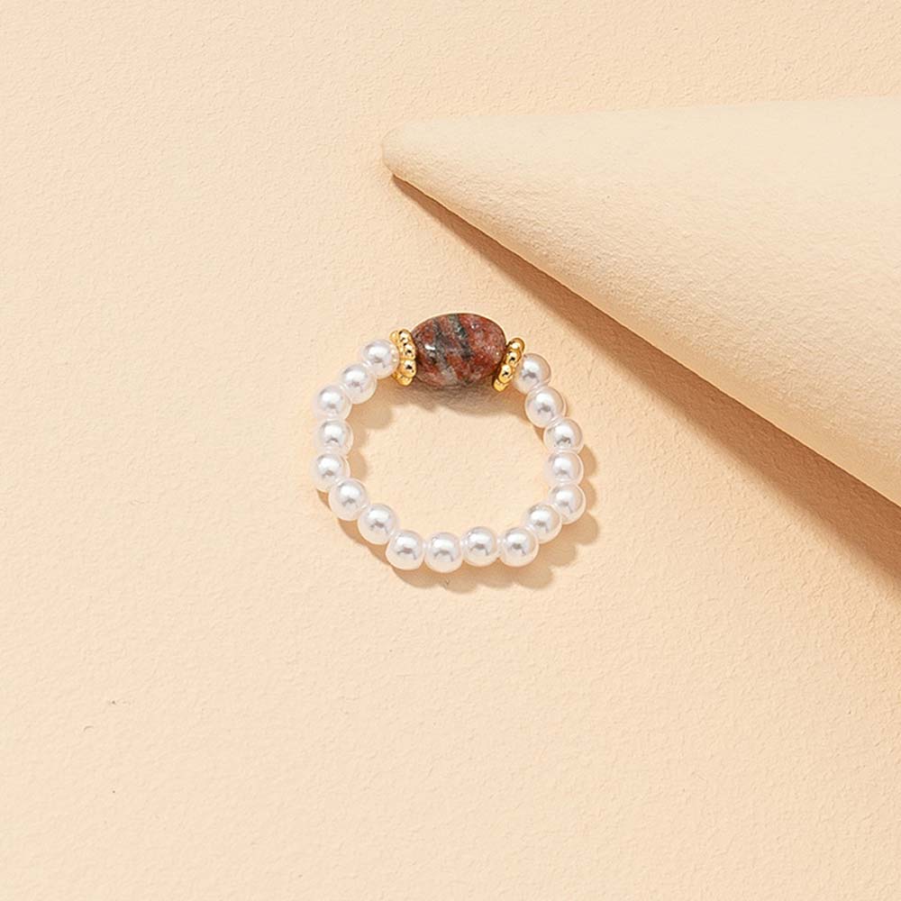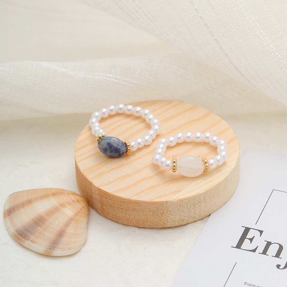 Personality Simple Retro Girls Korean Pearl Ring Fashion Jewelry Finger Rings Natural Stone
