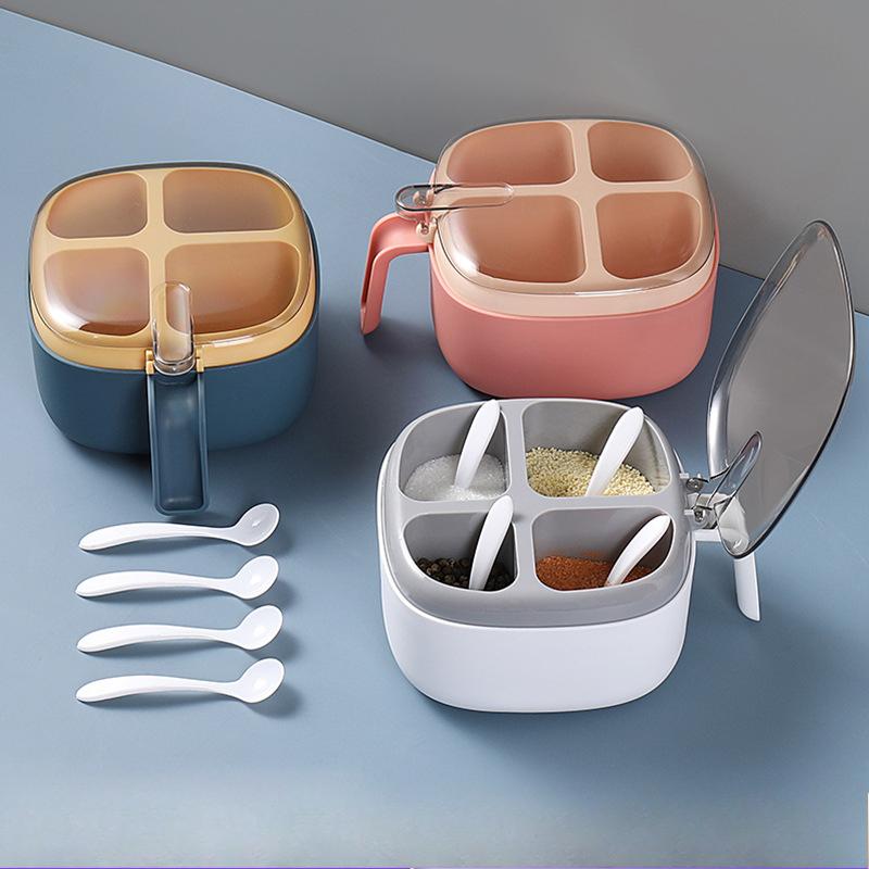 Коробка для приправ в четырех стилях КухняПрозрачная крышка с ложкойКоробка для приправ с кнопочным типом для соли
