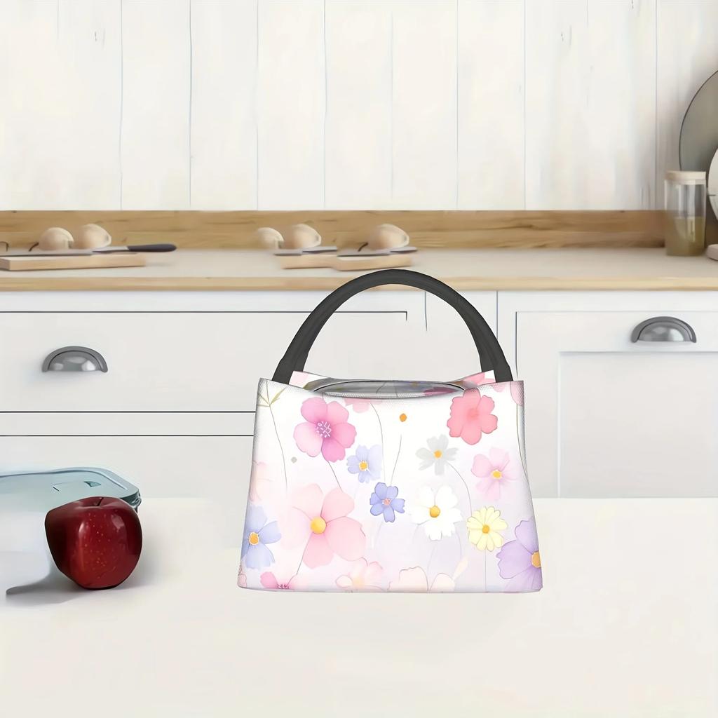 Цветочная термосумка для ланча – многоразовая, портативная сумка-холодильник с розовым и белым цветочным узором, идеально подходит для дома, офиса, школы