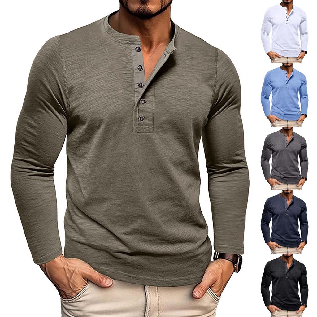 Мужской базовый топ с цветным хлопковым лацканом на пуговицах и длинным рукавом