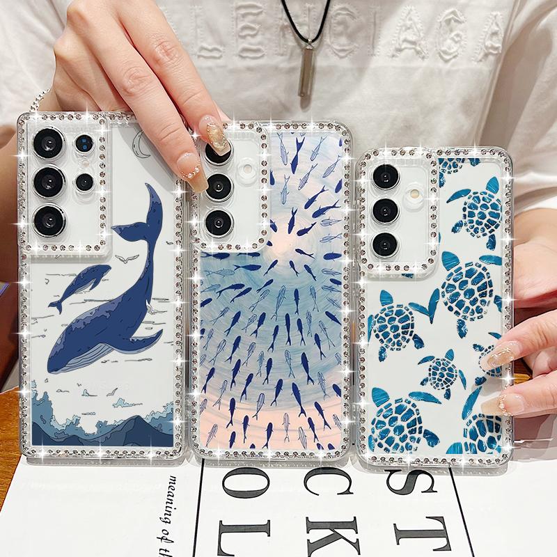 Мягкий силиконовый чехол с рисунком кита для Samsung S25 Edge S24 FE S23 Ultra S22 A16 A56 A36 A15 A55 A35 с ромбовидной рамкой, прозрачный противоударный чехол
