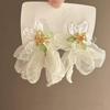 Винтажные серьги с длинной кисточкой в виде цветка для женщин, милые шифоновые серьги-подвески с темпераментом, для вечеринки, свадьбы, пляжа