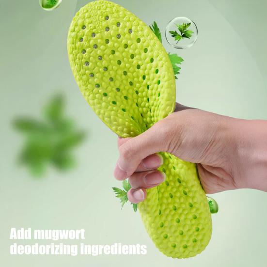Представляем инновационную стельку, сочетающую в себе уникальную комбинацию дезодорирующей полыни и полиуретанового материала. Этот передовой дизайн обеспечивает исключительную эластичность и превосходные дезодорирующие свойства, гарантируя сухость ног в течение всего дня.. Испытайте непревзойденный комфорт благодаря его гибкой и прочной конструкции, дополненной успокаивающим массажем пятки для снятия давления.. Идеальные для различных видов деятельности, эти многофункциональные спортивные стельки обеспечивают дезодорацию полынью, сверхмягкую амортизацию и поддержку без усталости для ваших ног..