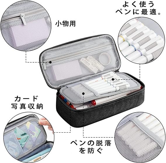 ⭐【Большая вместимость】22,5 x 10,5 x 2,5~6,6 см. 5 типов отсеков: 1 карман на молнии, 1 сетчатый карман, 6 держателей для ручек, 2 кармана для карт, 1 основное отделение.