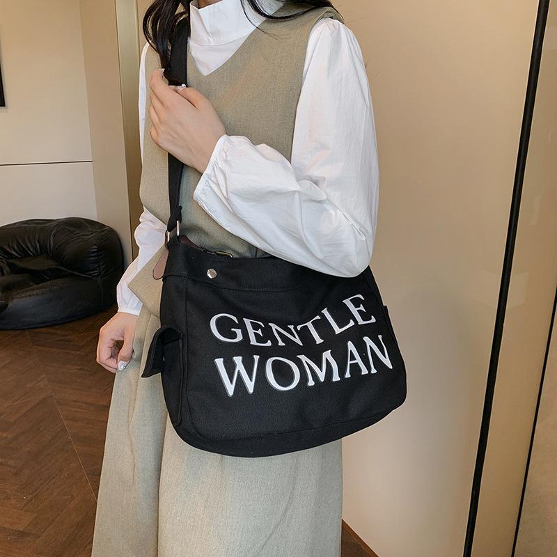 Буква большая вместимость холщовая сумка 2025 осень и зима нишевая сумка-мессенджер сумка