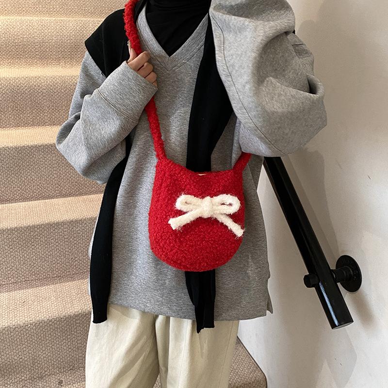 Ретро плюшевая сумка-ведро большой вместимости женская 2025 новая универсальная на плечо маленькая сумка-мессенджер нишевая повседневная сумка