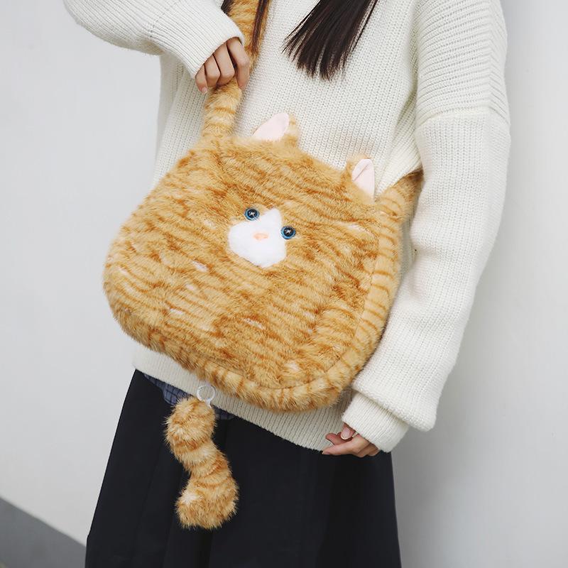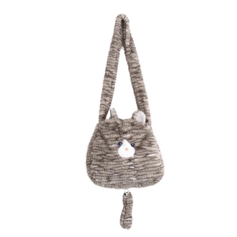 Милая плюшевая сумка-мессенджер в виде кошки, портативная, новый женский стиль, для девочки, мягкая, милая, пушистая, большой вместимости, на плечо