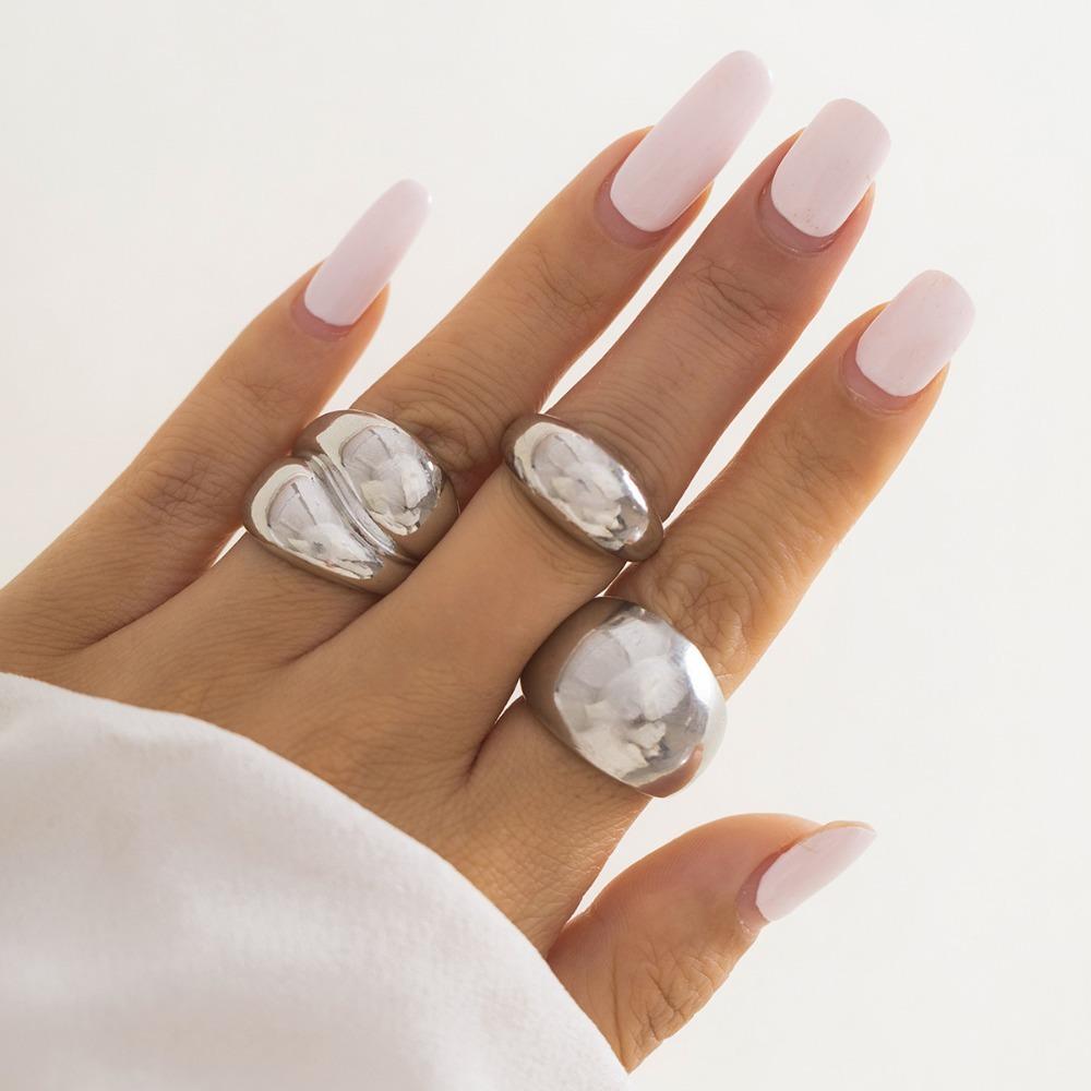 Металлическая текстура Открытое кольцо Кольцо с гладкой поверхностью Модное кольцо Набор